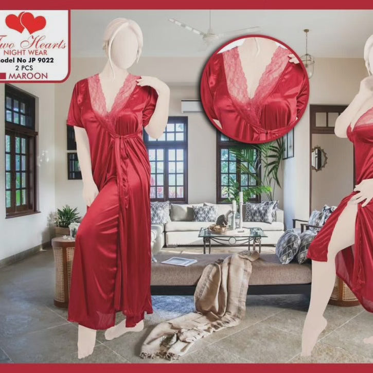 Two Hearts 2 piece silk long nighty